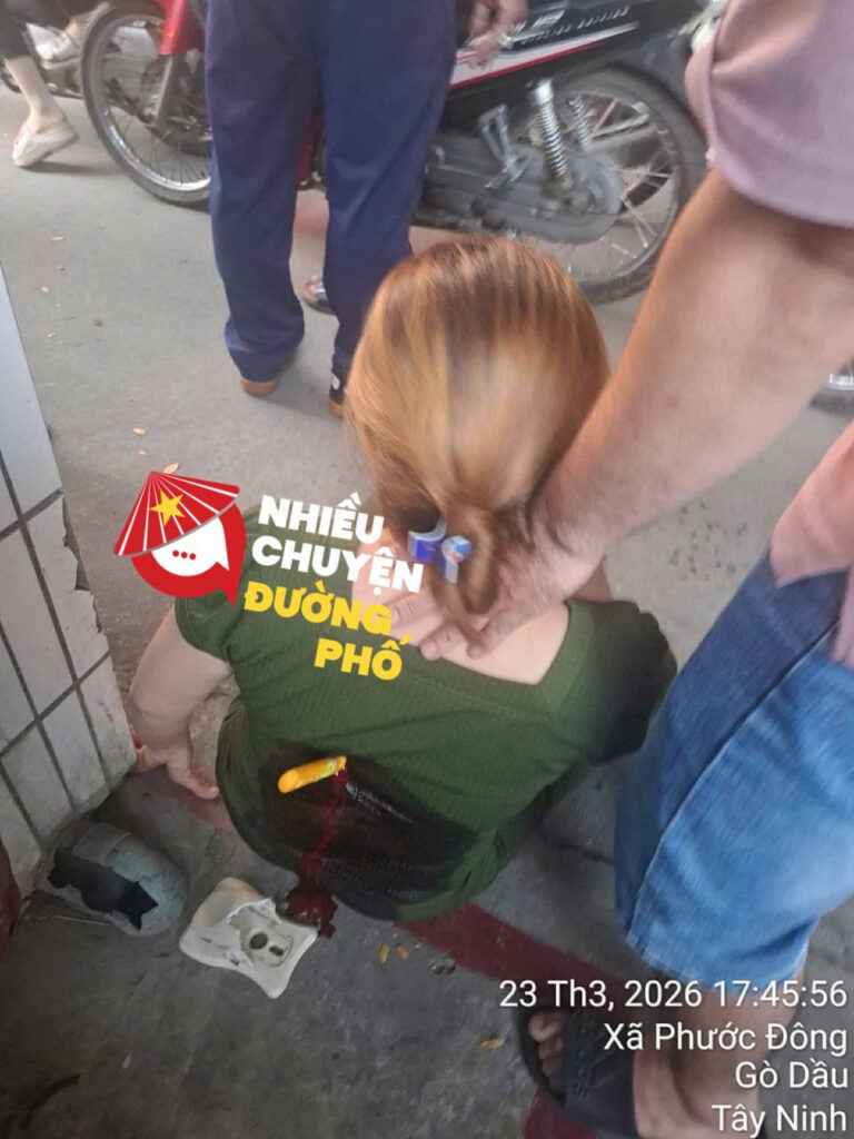 KCN nào đó ở Gò Dầu – Tây Ninh: 1 người đàn ông cầm dao dâm thẳng vào lưng 1 người phụ nữ xong vẫn còn nguyên cây dao trên lưng luôn *Chưa rõ nguyên nhân…