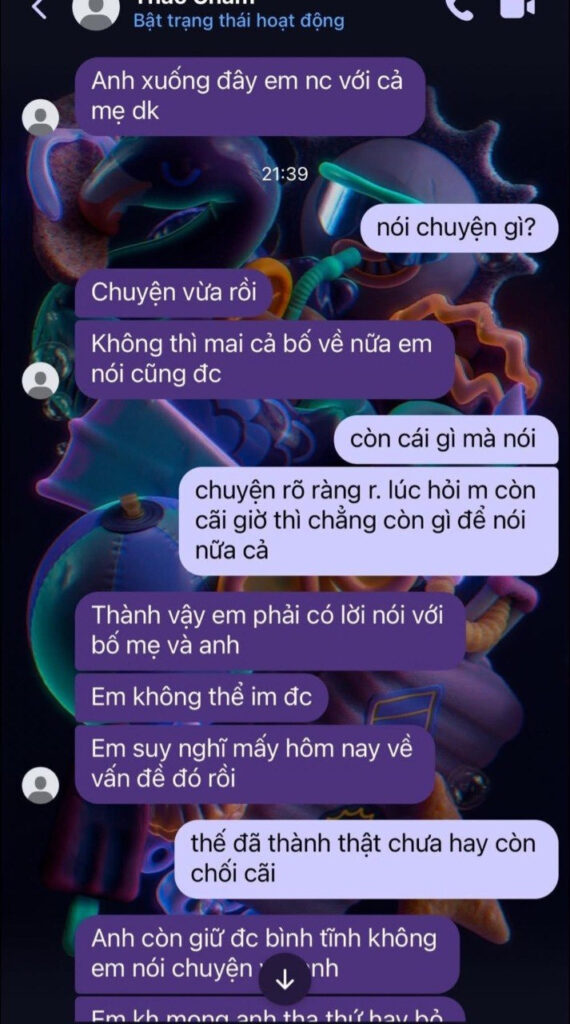 Quang Anh là zai tân, quen em Châm mẹ đơn thân này quê Yên Bái xuống Hà Nội làm việc. Chả hiểu Châm làm nghề gì mà cứ tối là mất hút con mẹ hàng lươn, đêm hôm mới về. Lần nào Quang Anh xuống thăm cũng thấy mặc đồ ngủ lụa, dép lê loẹt quẹt, ôm ấp một lúc rồi ai về nhà nấy, chẳng được ở lại lâu.