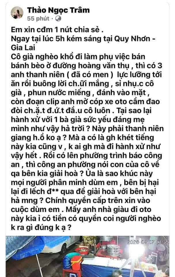 3 thanh niên xăm trổ say sỉn vào quán ăn uống, sau đó đã có hành vi gây rối và đánh một người phụ nữ lớn tuổi đang phụ quán. Đáng tuổi mẹ
